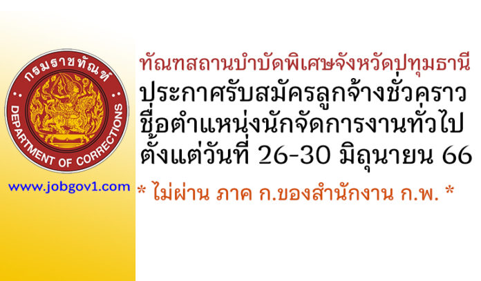ทัณฑสถานบำบัดพิเศษจังหวัดปทุมธานี รับสมัครลูกจ้างชั่วคราว ตำแหน่งนักจัดการงานทั่วไป ตั้งแต่วันที่ 26-30 มิถุนายน 2566