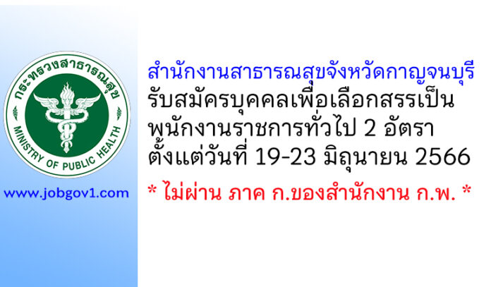 สำนักงานสาธารณสุขจังหวัดกาญจนบุรี รับสมัครบุคคลเพื่อเลือกสรรเป็นพนักงานราชการทั่วไป 2 อัตรา ตั้งแต่วันที่ 19-23 มิถุนายน 2566