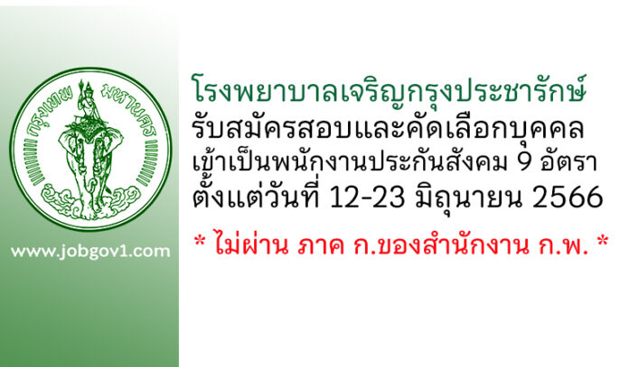 โรงพยาบาลเจริญกรุงประชารักษ์ รับสมัครสอบและคัดเลือกบุคคลเข้าเป็นพนักงานประกันสังคม 9 อัตรา ตั้งแต่วันที่ 12-23 มิถุนายน 2566