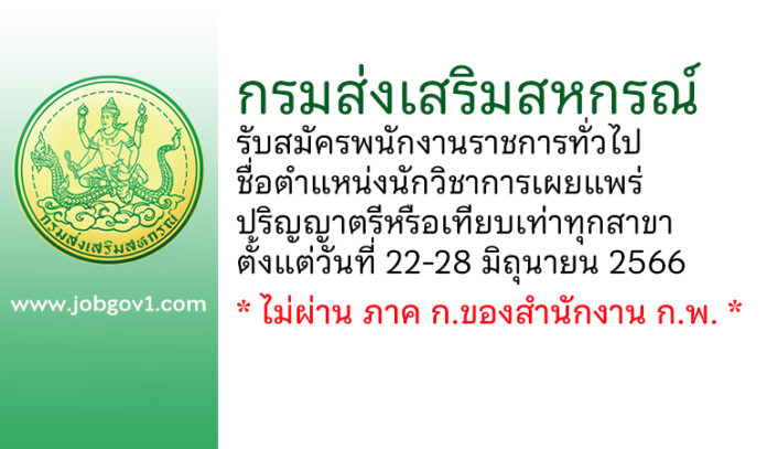 กรมส่งเสริมสหกรณ์ รับสมัครพนักงานราชการทั่วไป ตำแหน่งนักวิชาการเผยแพร่