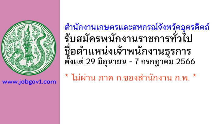 สำนักงานเกษตรและสหกรณ์จังหวัดอุตรดิตถ์ รับสมัครพนักงานราชการทั่วไป ตำแหน่งเจ้าพนักงานธุรการ ตั้งแต่ 29 มิถุนายน – 7 กรกฎาคม 2566