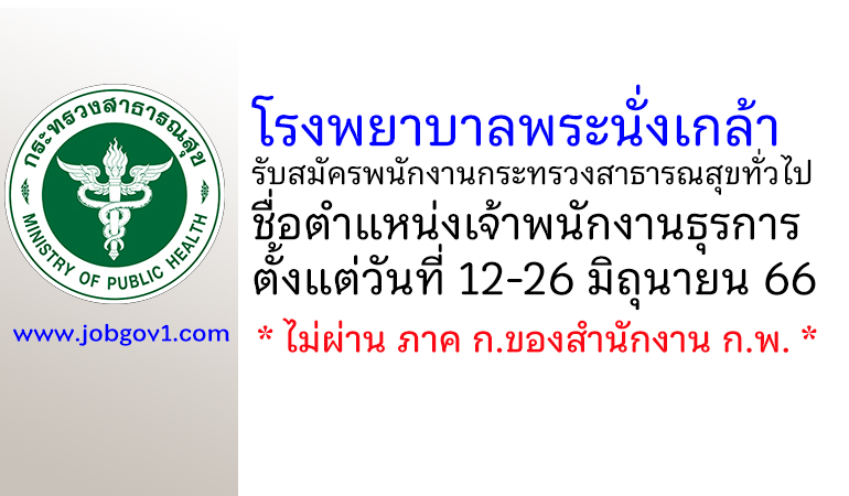 โรงพยาบาลพระนั่งเกล้า รับสมัครพนักงานกระทรวงสาธารณสุขทั่วไป ตำแหน่งเจ้าพนักงานธุรการ ตั้งแต่วันที่ 12-26 มิถุนายน 2566