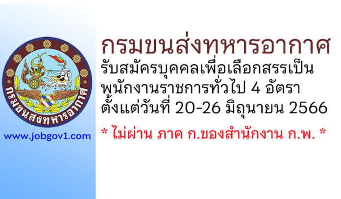 กรมขนส่งทหารอากาศ รับสมัครบุคคลเพื่อเลือกสรรเป็นพนักงานราชการทั่วไป 4 อัตรา ตั้งแต่วันที่ 20-26 มิถุนายน 2566