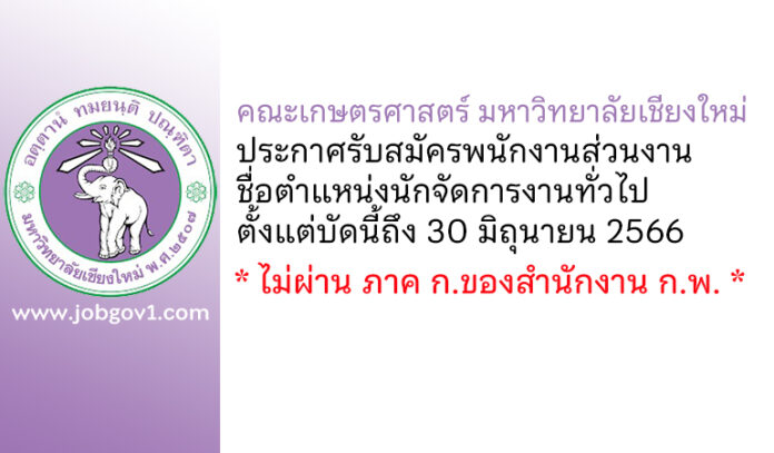 คณะเกษตรศาสตร์ มหาวิทยาลัยเชียงใหม่ รับสมัครพนักงานส่วนงาน ตำแหน่งนักจัดการงานทั่วไป ตั้งแต่บัดนี้ถึง 30 มิถุนายน 2566