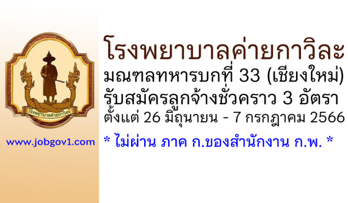 โรงพยาบาลค่ายกาวิละ รับสมัครลูกจ้างชั่วคราว 3 อัตรา ตั้งแต่ 26 มิถุนายน – 7 กรกฎาคม 2566