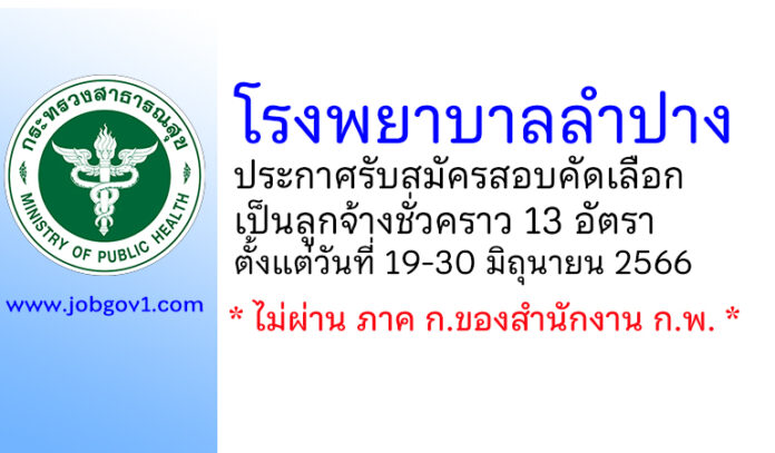 โรงพยาบาลลำปาง รับสมัครสอบคัดเลือกเป็นลูกจ้างชั่วคราว 13 อัตรา ตั้งแต่วันที่ 19-30 มิถุนายน 2566