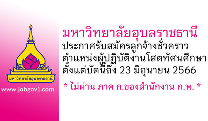 มหาวิทยาลัยอุบลราชธานี รับสมัครลูกจ้างชั่วคราว ตำแหน่งผู้ปฏิบัติงานโสตทัศนศึกษา ตั้งแต่บัดนี้ถึง 23 มิถุนายน 2566