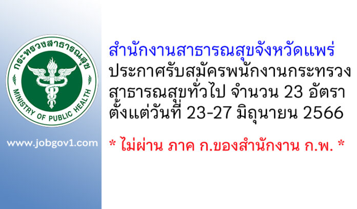 สำนักงานสาธารณสุขจังหวัดแพร่ รับสมัครพนักงานกระทรวงสาธารณสุขทั่วไป 23 อัตรา ตั้งแต่วันที่ 23-27 มิถุนายน 2566