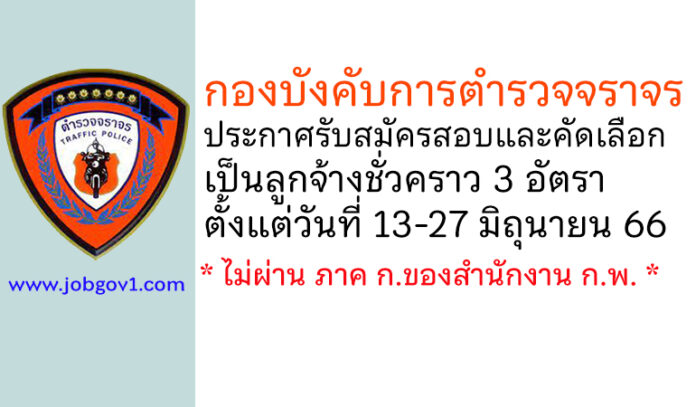 กองบังคับการตำรวจจราจร รับสมัครสอบและคัดเลือกเป็นลูกจ้างชั่วคราว 3 อัตรา ตั้งแต่วันที่ 13-27 มิถุนายน 2566