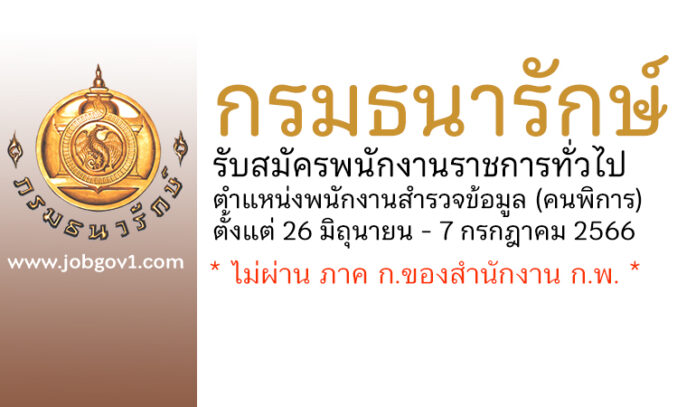 กรมธนารักษ์ รับสมัครพนักงานราชการทั่วไป ตำแหน่งพนักงานสำรวจข้อมูล (คนพิการ) ตั้งแต่ 26 มิถุนายน – 7 กรกฎาคม 2566
