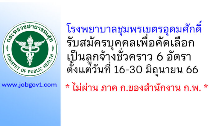 โรงพยาบาลชุมพรเขตรอุดมศักดิ์ รับสมัครบุคคลเพื่อคัดเลือกเป็นลูกจ้างชั่วคราว 6 อัตรา ตั้งแต่วันที่ 16-30 มิถุนายน 2566