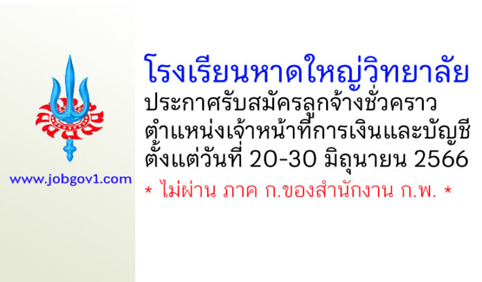 โรงเรียนหาดใหญ่วิทยาลัย รับสมัครลูกจ้างชั่วคราว ตำแหน่งเจ้าหน้าที่การเงินและบัญชี ตั้งแต่วันที่ 20-30 มิถุนายน 2566