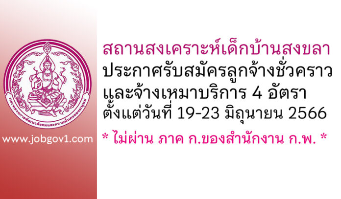 สถานสงเคราะห์เด็กบ้านสงขลา รับสมัครลูกจ้างชั่วคราว และจ้างเหมาบริการ 4 อัตรา ตั้งแต่วันที่ 19-23 มิถุนายน 2566