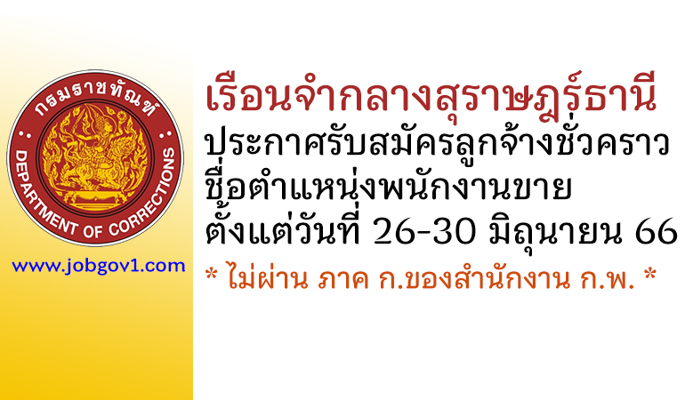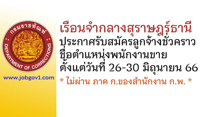 เรือนจำกลางสุราษฎร์ธานี รับสมัครลูกจ้างชั่วคราว ตำแหน่งพนักงานขาย ตั้งแต่วันที่ 26-30 มิถุนายน 2566