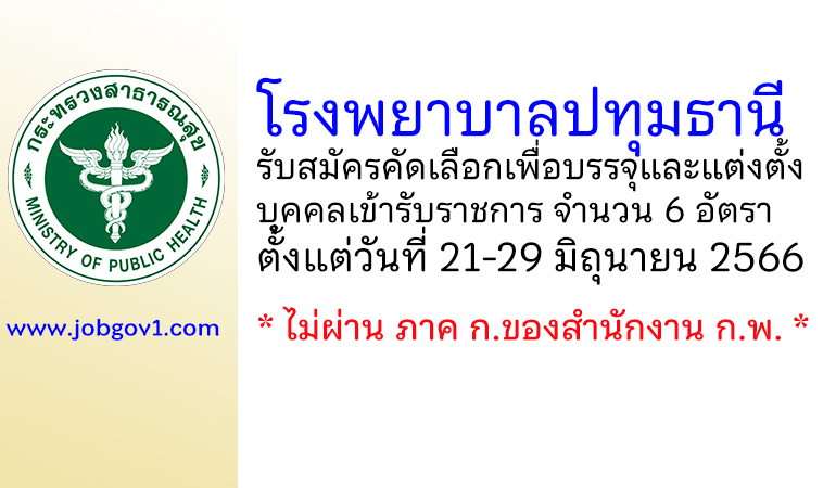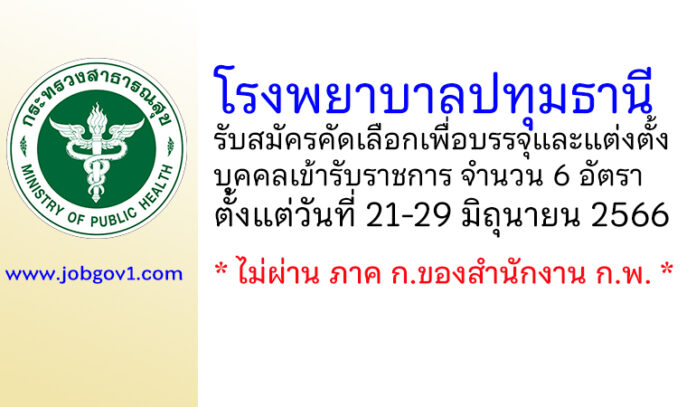 โรงพยาบาลปทุมธานี รับสมัครคัดเลือกเพื่อบรรจุและแต่งตั้งบุคคลเข้ารับราชการ 6 อัตรา ตั้งแต่วันที่ 21-29 มิถุนายน 2566