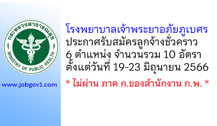 โรงพยาบาลเจ้าพระยาอภัยภูเบศร รับสมัครลูกจ้างชั่วคราว 10 อัตรา ตั้งแต่วันที่ 19-23 มิถุนายน 2566
