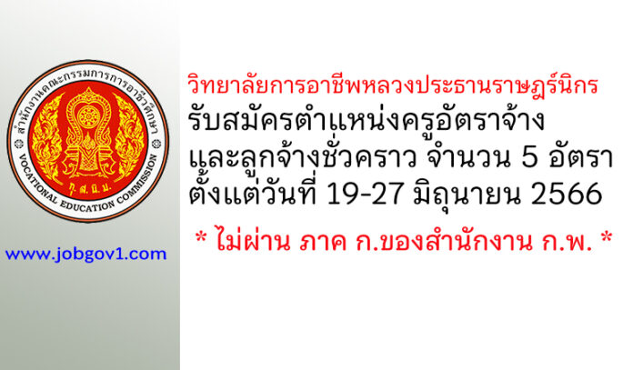 วิทยาลัยการอาชีพหลวงประธานราษฎร์นิกร รับสมัครครูอัตราจ้าง และลูกจ้างชั่วคราว 5 อัตรา ตั้งแต่วันที่ 19-27 มิถุนายน 2566