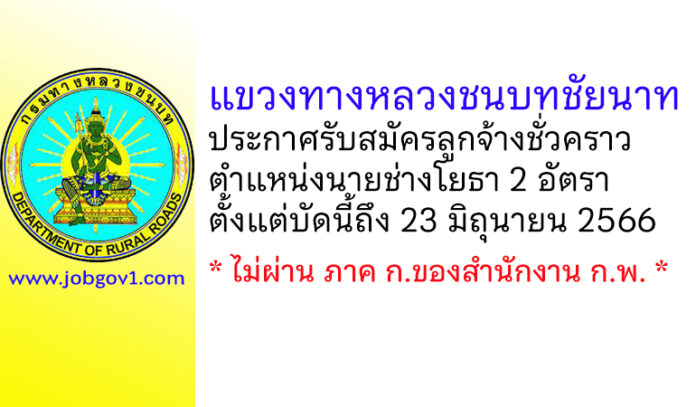 แขวงทางหลวงชนบทชัยนาท รับสมัครลูกจ้างชั่วคราว ตำแหน่งนายช่างโยธา 2 อัตรา ตั้งแต่บัดนี้ถึง 23 มิถุนายน 2566
