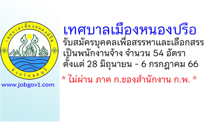 เทศบาลเมืองหนองปรือ รับสมัครบุคคลเพื่อสรรหาและเลือกสรรเป็นพนักงานจ้าง 54 อัตรา ตั้งแต่ 28 มิถุนายน – 6 กรกฎาคม 2566