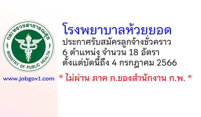 โรงพยาบาลห้วยยอด รับสมัครลูกจ้างชั่วคราว 6 ตำแหน่ง 18 อัตรา ตั้งแต่บัดนี้ถึง 4 กรกฎาคม 2566