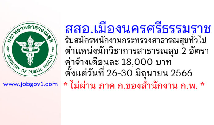 สสอ.เมืองนครศรีธรรมราช รับสมัครพนักงานกระทรวงสาธารณสุขทั่วไป ตำแหน่งนักวิชาการสาธารณสุข 2 อัตรา ตั้งแต่วันที่ 26-30 มิถุนายน 2566
