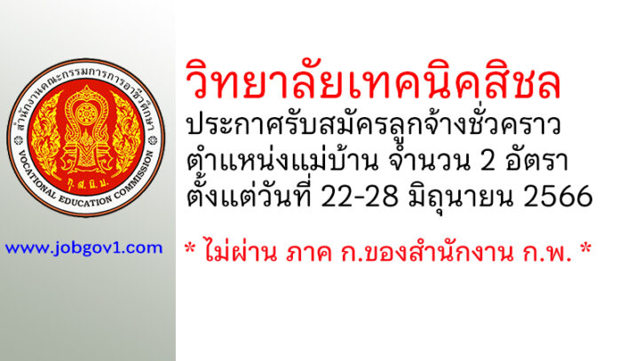 วิทยาลัยเทคนิคสิชล รับสมัครลูกจ้างชั่วคราว ตำแหน่งแม่บ้าน 2 อัตรา ตั้งแต่วันที่ 22-28 มิถุนายน 2566