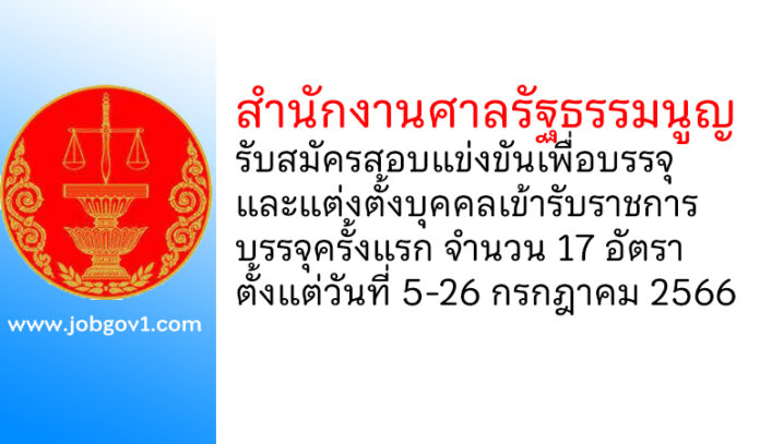 สำนักงานศาลรัฐธรรมนูญ รับสมัครสอบแข่งขันเพื่อบรรจุและแต่งตั้งบุคคลเข้ารับราชการ บรรจุครั้งแรก 17 อัตรา ตั้งแต่วันที่ 5-26 กรกฎาคม 2566