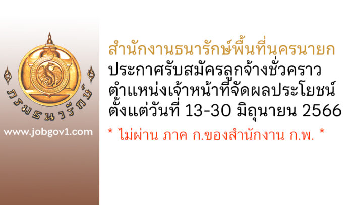 ประกาศจังหวัดนครนายก เรื่อง รับสมัครบุคคลทั่วไปเพื่อสอบคัดเลือกเป็นลูกจ้างชั่วคราว ตำแหน่งเจ้าหน้าที่จัดผลประโยชน์ ประจำสำนักงานธนารักษ์พื้นที่นครนายก