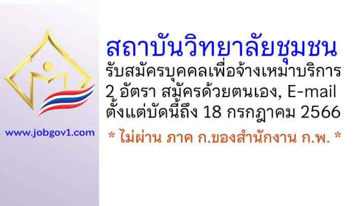 สถาบันวิทยาลัยชุมชน รับสมัครบุคคลเพื่อจ้างเหมาบริการ 2 อัตรา ตั้งแต่บัดนี้ถึง 18 กรกฎาคม 2566