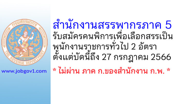 สำนักงานสรรพากรภาค 5 รับสมัครคนพิการเพื่อเลือกสรรเป็นพนักงานราชการทั่วไป 2 อัตรา ตั้งแต่บัดนี้ถึง 27 กรกฎาคม 2566