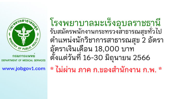 โรงพยาบาลมะเร็งอุบลราชธานี รับสมัครพนักงานกระทรวงสาธารณสุขทั่วไป ตำแหน่งนักวิชาการสาธารณสุข 2 อัตรา ตั้งแต่วันที่ 16-30 มิถุนายน 2566