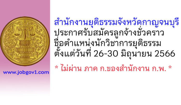 สำนักงานยุติธรรมจังหวัดกาญจนบุรี รับสมัครลูกจ้างชั่วคราว ตำแหน่งนักวิชาการยุติธรรม ตั้งแต่วันที่ 26-30 มิถุนายน 2566