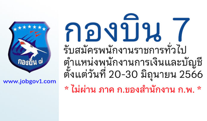 กองบิน 7 รับสมัครพนักงานราชการทั่วไป ตำแหน่งพนักงานการเงินและบัญชี ตั้งแต่วันที่ 20-30 มิถุนายน 2566