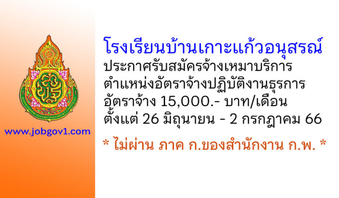 ประกาศโรงเรียนบ้านเกาะแก้วอนุสรณ์ เรื่อง รับสมัครคัดเลือกบุคคลเพื่อจ้างเป็นลูกจ้างชั่วคราว ตำแหน่งอัตราจ้างปฏิบัติงานธุรการ