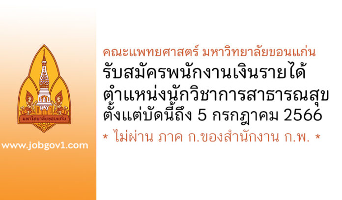 คณะแพทยศาสตร์ มหาวิทยาลัยขอนแก่น รับสมัครพนักงานเงินรายได้ ตำแหน่งนักวิชาการสาธารณสุข ตั้งแต่บัดนี้ถึง 5 กรกฎาคม 2566