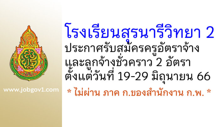 โรงเรียนสุรนารีวิทยา 2 รับสมัครครูอัตราจ้าง และลูกจ้างชั่วคราว 2 อัตรา ตั้งแต่วันที่ 19-29 มิถุนายน 2566