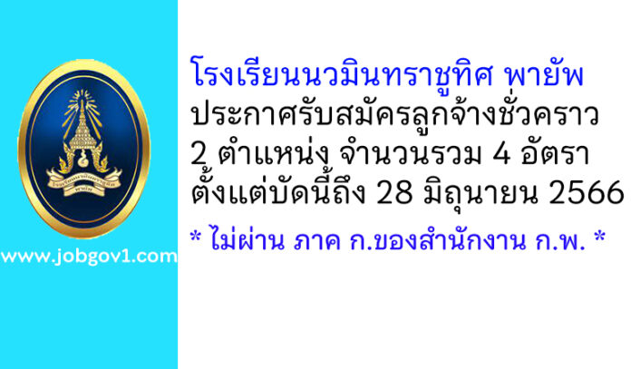 โรงเรียนนวมินทราชูทิศ พายัพ รับสมัครลูกจ้างชั่วคราว 2 ตำแหน่ง 4 อัตรา ตั้งแต่บัดนี้ถึง 28 มิถุนายน 2566