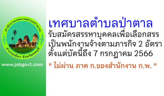 เทศบาลตำบลป่าตาล รับสมัครสรรหาบุคคลเพื่อเลือกสรรเป็นพนักงานจ้างตามภารกิจ 2 อัตรา ตั้งแต่บัดนี้ถึง 7 กรกฎาคม 2566