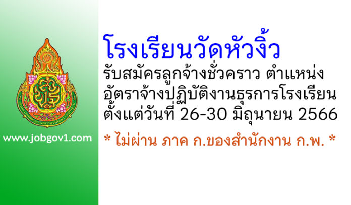 โรงเรียนวัดหัวงิ้ว รับสมัครลูกจ้างชั่วคราว ตำแหน่งอัตราจ้างปฏิบัติงานธุรการโรงเรียน ตั้งแต่วันที่ 26-30 มิถุนายน 2566