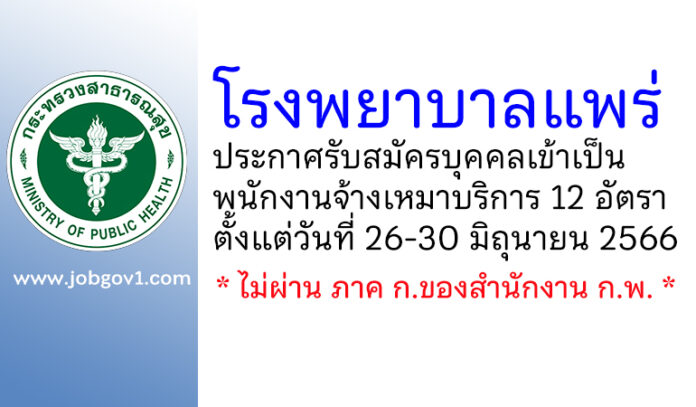 โรงพยาบาลแพร่ รับสมัครพนักงานจ้างเหมาบริการ 12 อัตรา ตั้งแต่วันที่ 26-30 มิถุนายน 2566