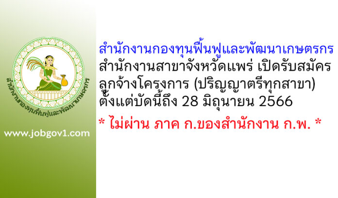 สำนักงานกองทุนฟื้นฟูและพัฒนาเกษตรกร สำนักงานสาขาจังหวัดแพร่ รับสมัครคัดเลือกเป็นลูกจ้างโครงการ ตั้งแต่บัดนี้ถึง 28 มิถุนายน 2566