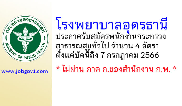 โรงพยาบาลอุดรธานี รับสมัครพนักงานกระทรวงสาธารณสุขทั่วไป 4 อัตรา ตั้งแต่บัดนี้ถึง 7 กรกฎาคม 2566