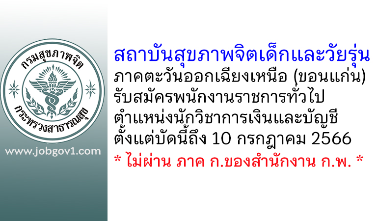 สถาบันสุขภาพจิตเด็กและวัยรุ่นภาคตะวันออกเฉียงเหนือ รับสมัครพนักงานราชการทั่วไป ตำแหน่งนักวิชาการเงินและบัญชี ตั้งแต่บัดนี้ถึง 10 กรกฎาคม 2566