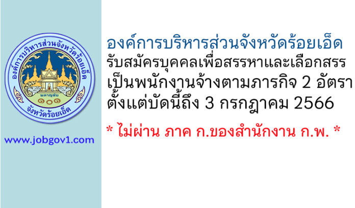 องค์การบริหารส่วนจังหวัดร้อยเอ็ด รับสมัครบุคคลเพื่อสรรหาและเลือกสรรเป็นพนักงานจ้าง 2 อัตรา ตั้งแต่บัดนี้ถึง 3 กรกฎาคม 2566