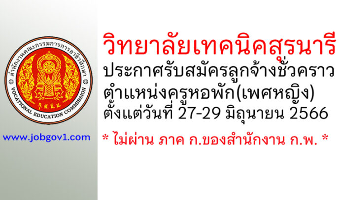 วิทยาลัยเทคนิคสุรนารี รับสมัครลูกจ้างชั่วคราว ตำแหน่งครูหอพัก(เพศหญิง) ตั้งแต่วันที่ 27-29 มิถุนายน 2566