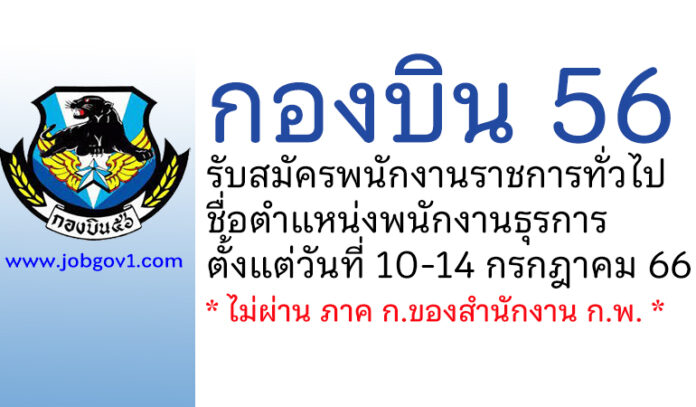 กองบิน 56 รับสมัครพนักงานราชการทั่วไป ตำแหน่งพนักงานธุรการ ตั้งแต่วันที่ 10-14 กรกฎาคม 2566