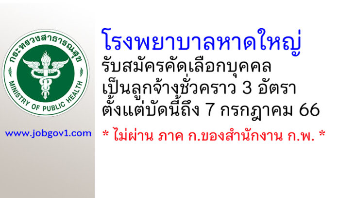 โรงพยาบาลหาดใหญ่ รับสมัครคัดเลือกบุคคลเป็นลูกจ้างชั่วคราว 3 อัตรา ตั้งแต่บัดนี้ถึง 7 กรกฎาคม 2566