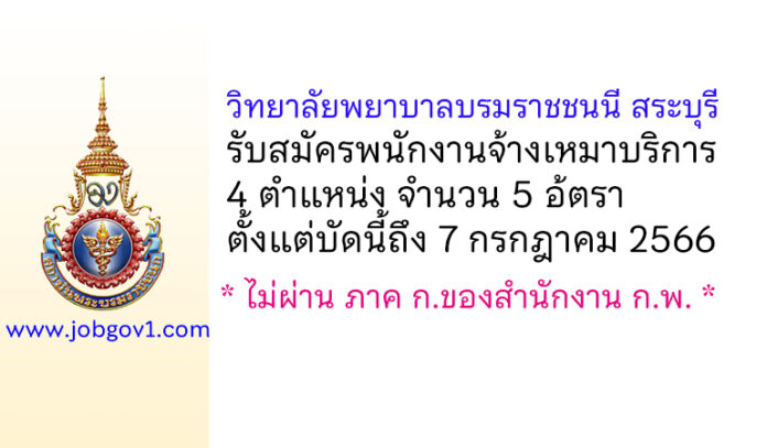 วิทยาลัยพยาบาลบรมราชชนนี สระบุรี รับสมัครพนักงานจ้างเหมาบริการ 5 อ้ตรา ตั้งแต่บัดนี้ถึง 7 กรกฎาคม 2566