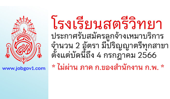โรงเรียนสตรีวิทยา รับสมัครลูกจ้างเหมาบริการ 2 อัตรา ตั้งแต่บัดนี้ถึง 4 กรกฎาคม 2566