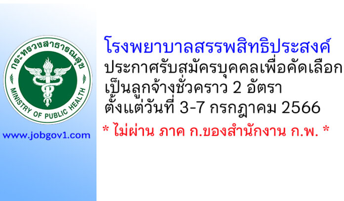 โรงพยาบาลสรรพสิทธิประสงค์ รับสมัครบุคคลเพื่อคัดเลือกเป็นลูกจ้างชั่วคราว 2 อัตรา ตั้งแต่วันที่ 3-7 กรกฎาคม 2566